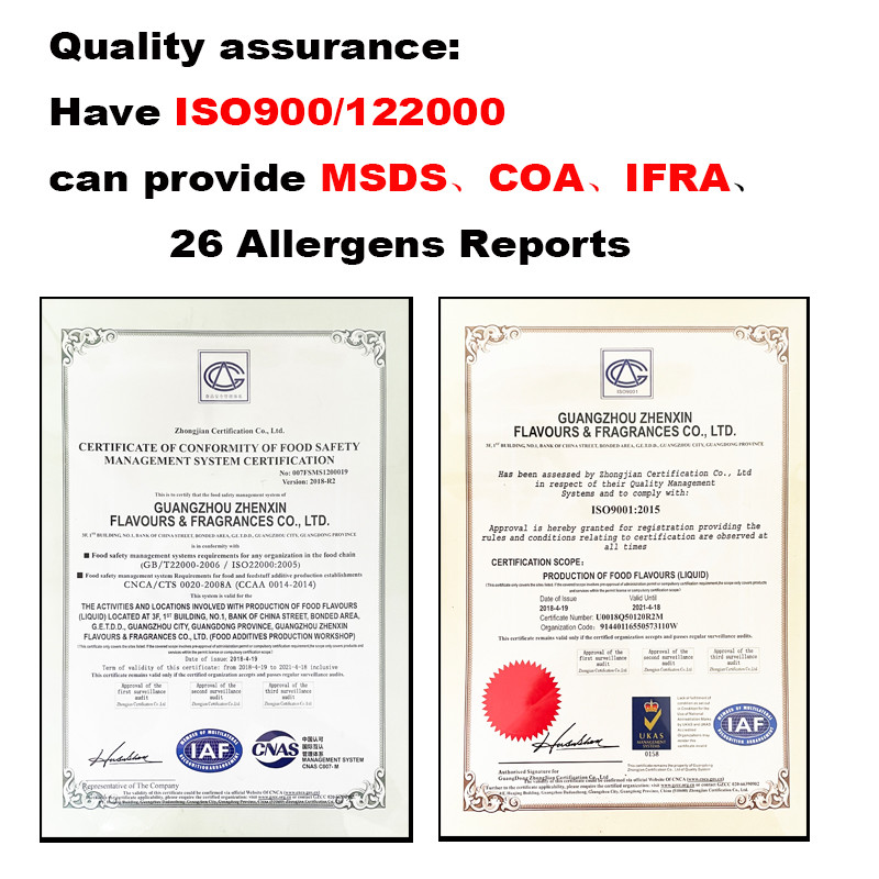 ZHENXIN เป็นหนึ่งในผู้ผลิตชั้นนําในประเทศจีน เราผลิตสินค้ามากกว่า 10000 รายการที่มี ISO, HALAL IFRA, COA, MSDS ใบรับรองและงานเชิงปฏิบัติการที่มีประสบการณ์มากกว่า 14 ปีผลิตภัณฑ์ของเราหลายอย่างถูกส่งออกไปยังแอฟริกา, โอเชียเนีย,ตะวันออกกลาง,เอเชียตะวันออกเฉียงใต้,สหรัฐอเมริกาและยุโรป
